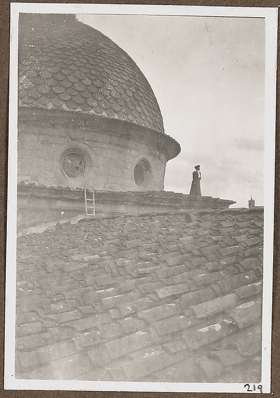 Durante le sue esplorazioni, riuscì persino a salire sul tetto della chiesa di Santo Spirito, un’esperienza che lo colpì profondamente. Con la sua macchina fotografica, immortalò ciò che lo circondava: un’amica in abiti vittoriani accanto alla cupola, le ampie vedute della città, incorniciate dai coppi, ma anche dettagli più tecnici, catturati con cura e attenzione. Tra questi, una fotografia del sottotetto della chiesa con le volte brunelleschiane rivela molto del suo approccio all’architettura: Cecil non si limitava ad appezzare aspetti superficiali, ma era interessato a comprendere a fondo la logica statica e costruttiva dei capolavori dell’architettura rinascimentale che aveva l’opportunità di osservare e studiare a Firenze. Di lì a pochi anni, sarebbe proprio stata la pratica di cantiere, il contatto diretto con il lavoro delle maestranze, a coinvolgerlo ed entusiasmarlo sempre di più.