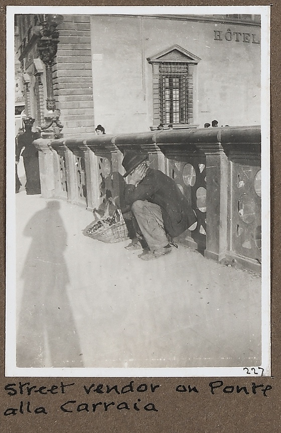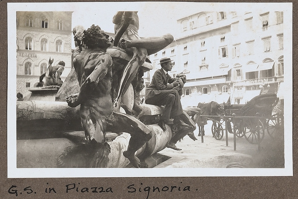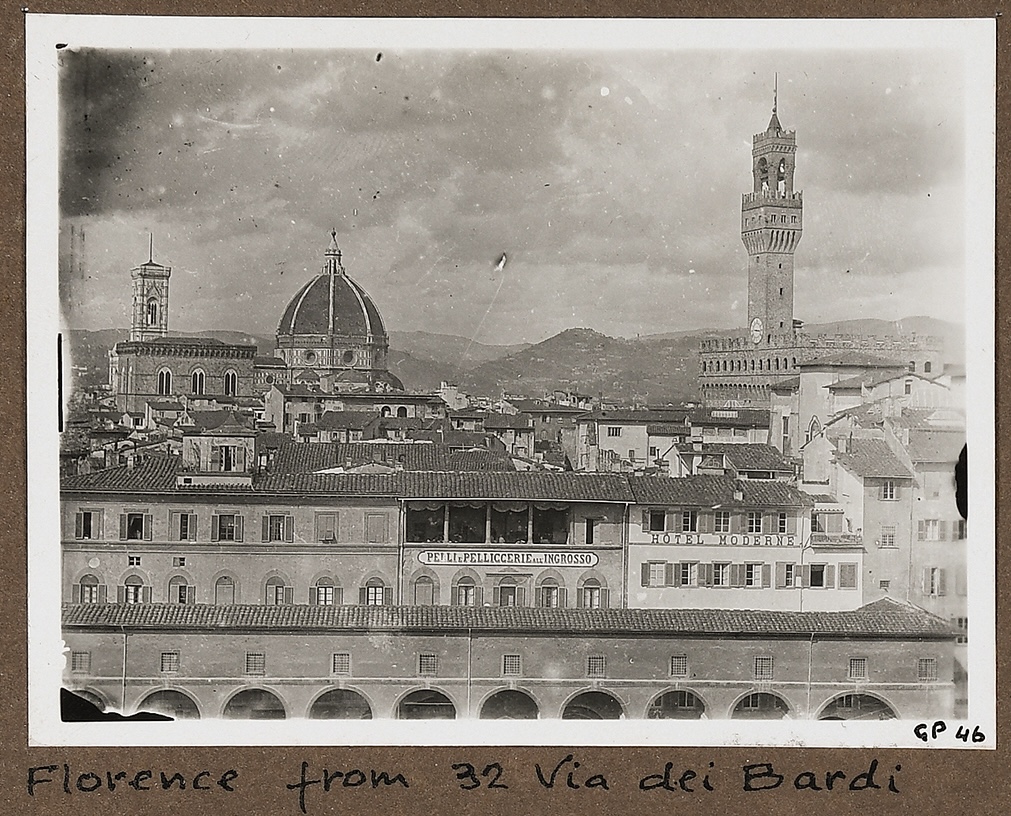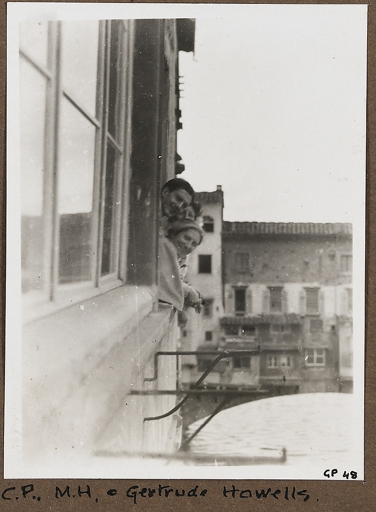 Cecil non era solo nel suo viaggio: lo accompagnarono Edmund e Mary Houghton, amici di famiglia molto più anziani di lui. Per loro non si trattava della prima esperienza in Italia, perché da anni trascorrevano abitualmente lunghi periodi a Firenze, in un appartamento in via dei Bardi 32 nei pressi di Ponte Vecchio. Tre fotografie, datate aprile 1909, mostrano Mary, l’amica Gertrude Howells e Cecil sorridenti, affacciati alla finestra dell’appartamento, con l’iconico ponte sullo sfondo.