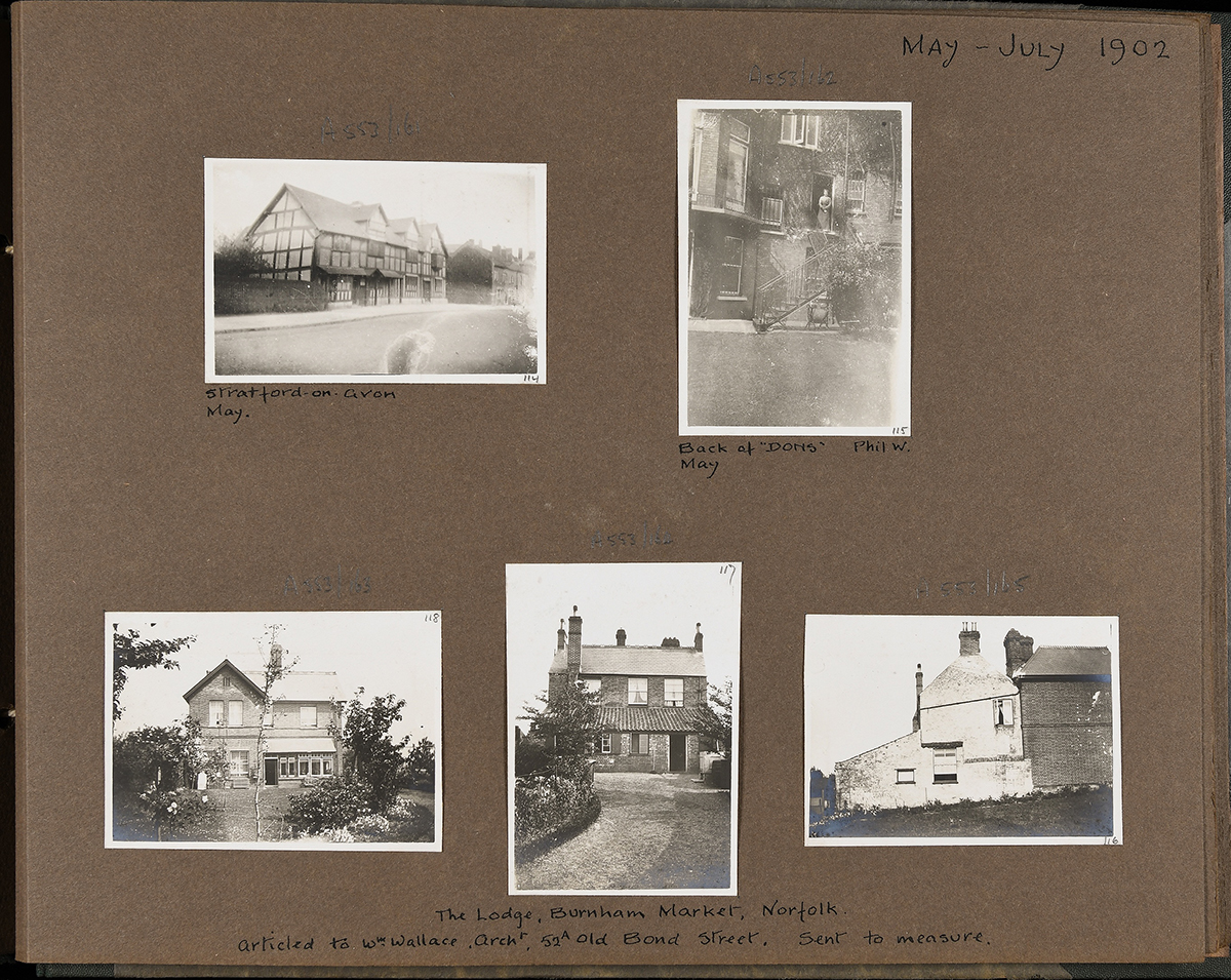Uno dei primi incarichi assegnati a Cecil come studente della Architectural Association fu il rilievo di una casa di campagna nel Norfolk, affidatogli da William Wallace, architetto di origine scozzese che lo aveva accolto come tirocinante nel suo studio a Londra, al 52 di Old Bond Street. Cinque scatti della casa, realizzati nella primavera del 1902, evocano un momento che, dietro alla sua apparente semplicità, ebbe per lui un valore decisivo. Dei disegni eseguiti in quell’occasione non resta traccia, ma è probabile che, nel giro di pochi anni, la sua tecnica si fosse affinata e fosse rivolta a soggetti via via più complessi.