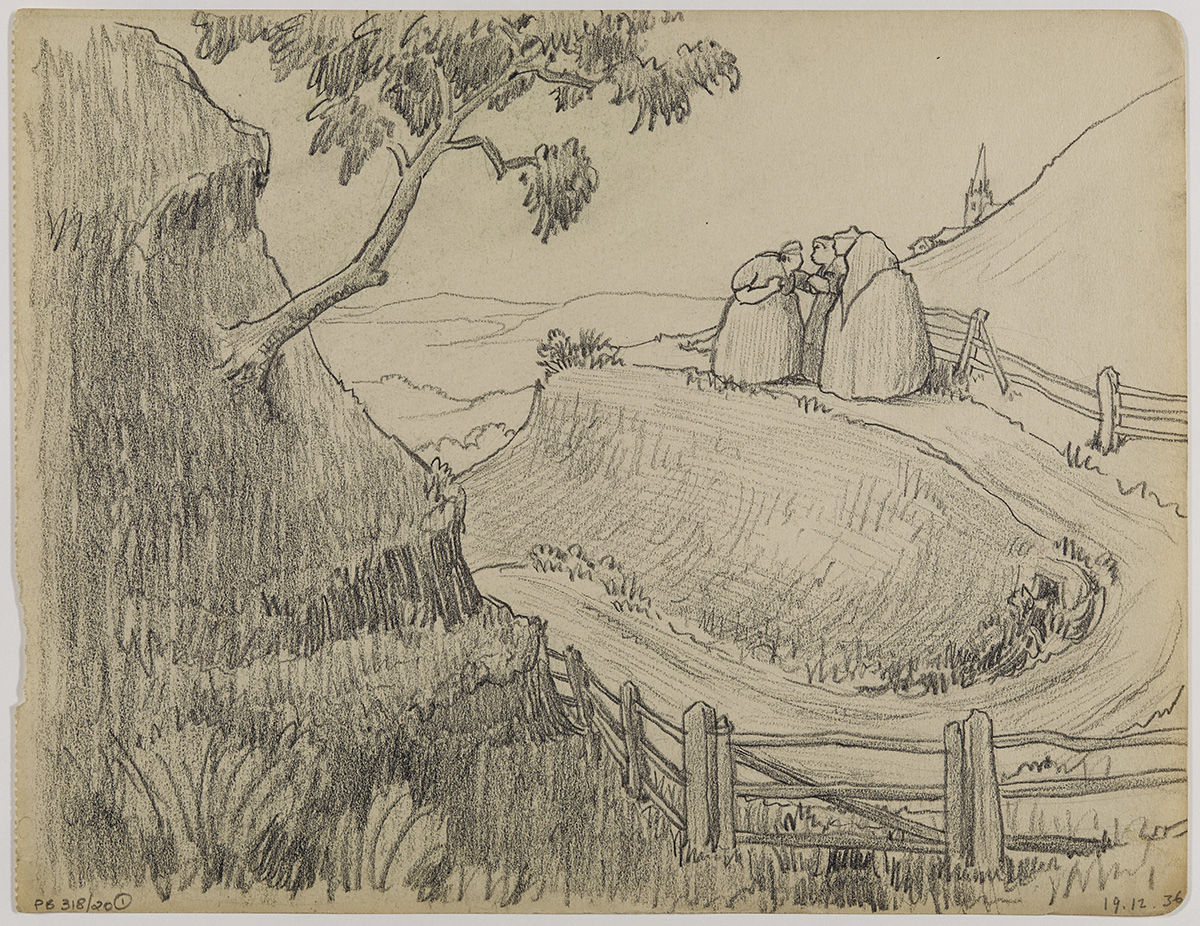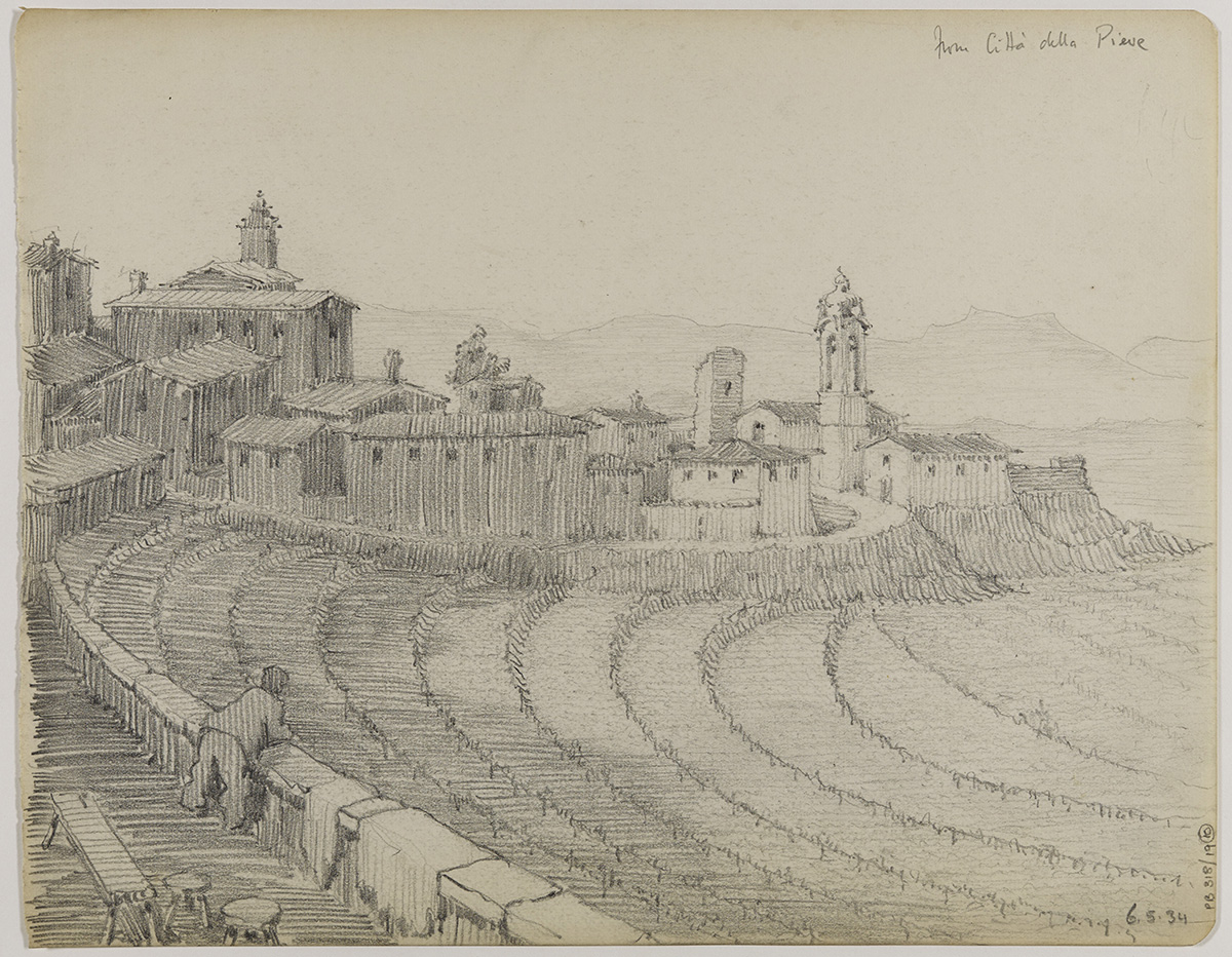 Nei primi anni del suo soggiorno in Italia, i viaggi rappresentarono per Cecil una costante occasione di crescita artistica. Ogni tappa gli offriva nuovi spunti per il disegno, che per lui era un esercizio di osservazione e al tempo stesso uno strumento di studio, utile ad ampliare il proprio repertorio. Fu questa motivazione a spingerlo, nel marzo 1912, a percorrere Roma con il taccuino in mano, disegnando a matita, con un tratto vivace ed espressivo, le facciate e gli interni delle chiese barocche, con i loro pomposi apparati decorativi. Col tempo, tuttavia, il suo sguardo si volse sempre più verso il paesaggio. I disegni degli anni successivi raffigurano infatti scorci della campagna toscana, le sue linee morbide e i contadini colti nella quotidianità della vita rurale.