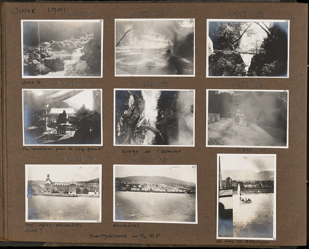 Nel giugno del 1901 Cecil intraprese il suo primo viaggio in Svizzera, accompagnato dal padre. Le fotografie scattate in quell’occasione rivelano una passione crescente per il Medioevo, ma anche il richiamo esercitato dalla natura, evidente nelle immagini delle “Gorges de l’Areuse” e del lago di Neuchâtel. In quegli anni, l’alpinismo e il turismo naturalistico cominciavano a diffondersi tra la borghesia europea, in particolare quella inglese, e la montagna era sempre più vissuta come luogo di svago e contemplazione estetica.
