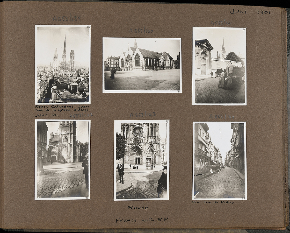 Sulla via del ritorno, padre e figlio fecero tappa a Rouen, in Normandia, dove Cecil immortalò con la sua macchina fotografica la celebre cattedrale gotica, esempio dell’architettura medievale francese. Nelle vedute riprese dalla Torre dell’Orologio e dalle strade cittadine, dedicò particolare attenzione alla guglia in ghisa progettata da Jean-Antoine Alavoine circa ottant’anni prima: evidentemente, anche i risultati dell’ingegneria ottocentesca, così come quelli raggiunti dai mastri medievali, suscitavano in lui grande entusiasmo.