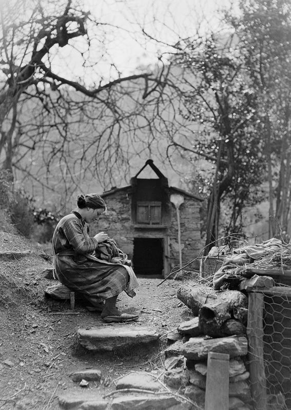 Come testimonia un altro gruppo di fotografie presente in questo nucleo tematico (Figg. 14-17) riferito alla divisione sessuale del lavoro, quello femminile sembra essere il “polmone”, il “cardine elastico” della famiglia colonica: una condizione confermata largamente anche dai dati di ricerca su fonti orali. Partendo dagli spazi circoscritti alla triade casa-cortile-orto, le mansioni femminili si espandono variamente, a seconda delle esigenze di tutti i settori produttivi, garantendo il funzionamento di diversi ambiti della vita sia familiare che poderale. La donna lavora nei campi, rigoverna la casa, talora porta a pascolare o cura gli animali da cortile, fila, tesse e collabora in molteplici attività (panificazione, bucato, ecc.). E non si dimentichi il suo ruolo centrale di madre, funzione determinante per il modello tradizionale mezzadrile di sviluppo dei cicli familiari.