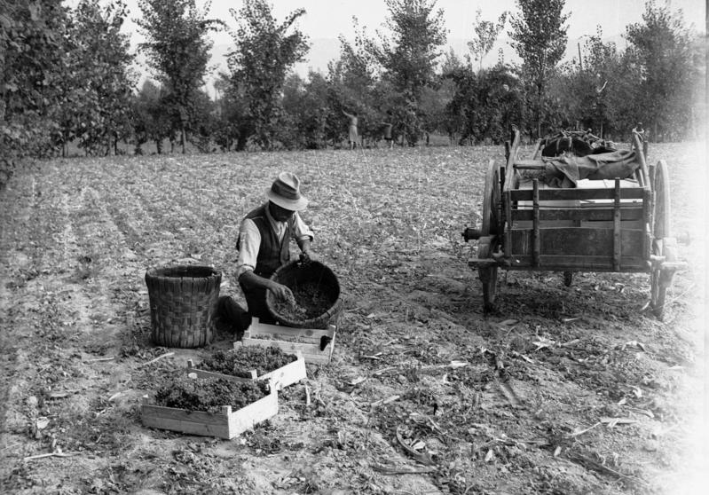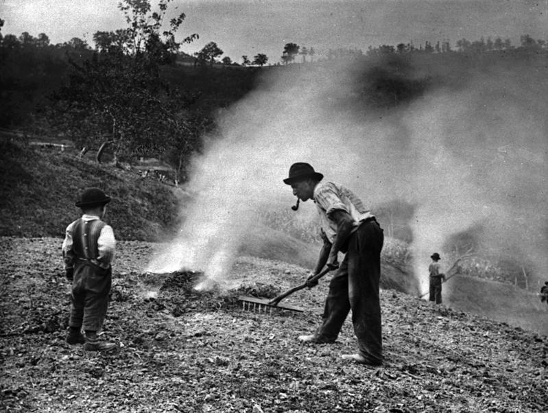 2. Fratelli Alinari, Contadini intenti a dar fuoco agli sterpi in un’area campestre della Toscana, 1930 ca., lastra di vetro, 21 x 27 cm, N negativo gelatina ai sali di argento, Archivi Alinari, Firenze, ACA-F-043748-0000.