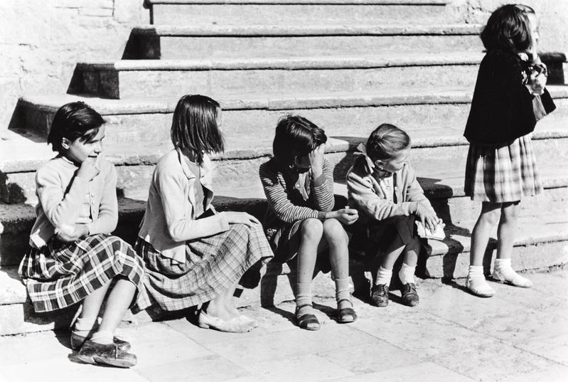 I rapporti tra i due contesti territoriali (città-campagna) possono essere esplorati anche attraverso altre dimensioni della vita quotidiana, come quelle del turismo o del gioco. L’interesse antropologico per il tema del gioco nasce dalla consapevolezza che le attività ludiche costituiscono una chiave di lettura fondamentale per decifrare i codici culturali, i sistemi di valori, le strutture sociali e i processi di trasmissione del sapere di ogni società. Il gioco, infatti, non è mai un’attività puramente ricreativa: è sempre culturalmente connotato, socialmente significativo e simbolicamente denso, come mostrano le fotografie che raccontano le attività di svago, mettendo in relazione vari aspetti: le pratiche ludiche, i luoghi dedicati al gioco e i rapporti tra i generi nelle attività infantili (Figg. 18-21).