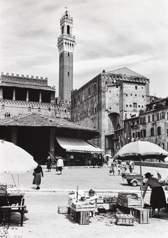 Il percorso espositivo raccoglie una composita antologia di sessantuno scatti fotografici in bianco e nero provenienti dagli Archivi Alinari che documentano il rapporto tra paesaggio rurale e paesaggio urbano in Toscana, in particolare nell’area senese, lungo l’arco di più di un secolo. Le immagini mostrano le trasformazioni storiche, sociali e culturali che hanno interessato Siena e i territori dei dintorni tra gli anni Sessanta dell’Ottocento e gli anni Ottanta del Novecento; sono ritratti di paesaggi di città e campagna segnati dalla presenza umana, animati dal lavoro, dalla festa, dalla vita quotidiana, in una prospettiva narrativa che configura la vivace fisionomia dei luoghi abitati e restituisce la dinamicità delle esperienze e dei vissuti.