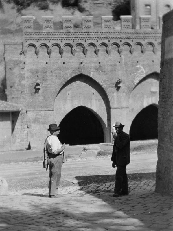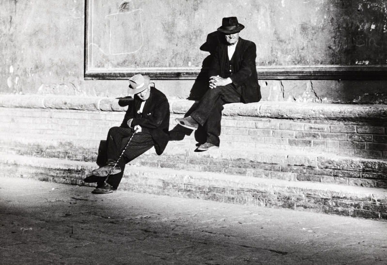Ad altre fotografie è affidato il compito di ricostruire la quotidianità dell’esistenza rurale e urbana in una prospettiva di scambio e dialogo in cui è ancora più chiaro l’intrecciarsi delle diverse classi sociali – in particolare nei raggruppamenti dei Ritratti (Figg. 33-36; 45-49) e dei Paesi (Figg. 37-40) –, ma anche un’inversione di prospettiva, quasi un ribaltamento dei canoni teorici consueti. A questo proposito, la serie delle Vedute (Figg. 41-44) merita un’attenzione specifica, con un richiamo a quello che è stato uno dei nostri punti di riferimento: gli Effetti del Buon Governo di Ambrogio Lorenzetti, in cui, com’è noto, la città si mostra in un rapporto di stretta interdipendenza e dialogo con la campagna circostante. Il centro urbano fortificato e il territorio agricolo appaiono nell’opera come due spazi sociali distinti ma interconnessi: la raffigurazione mostra figure ed elementi rurali – persone, bestiame e prodotti della terra – all’interno delle mura cittadine, mentre nobili cittadini si dirigono verso la campagna. Ne emerge così un’immagine che suggerisce una relazione di reciproco beneficio per tutti gli abitanti. Il modello ideale di un rapporto equilibrato tra città e campagna, l’auspicata integrazione organica tra i due ambienti, è poi restituito dalla stessa costruzione formale e modulare dell’affresco, in cui i due contesti sono rappresentati in un perfetto equilibrio spaziale.
